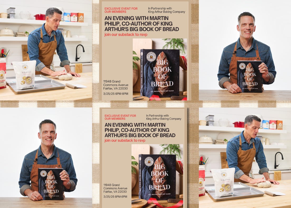 Join us for an exclusive Cookbook Courtyard members event in partnership with King Arthur Baking Company on Tuesday, March 25, from 6 to 8 p.m., featuring award-winning baker Martin Philip, co-author of King Arthur Baking’s Big Book of Bread!